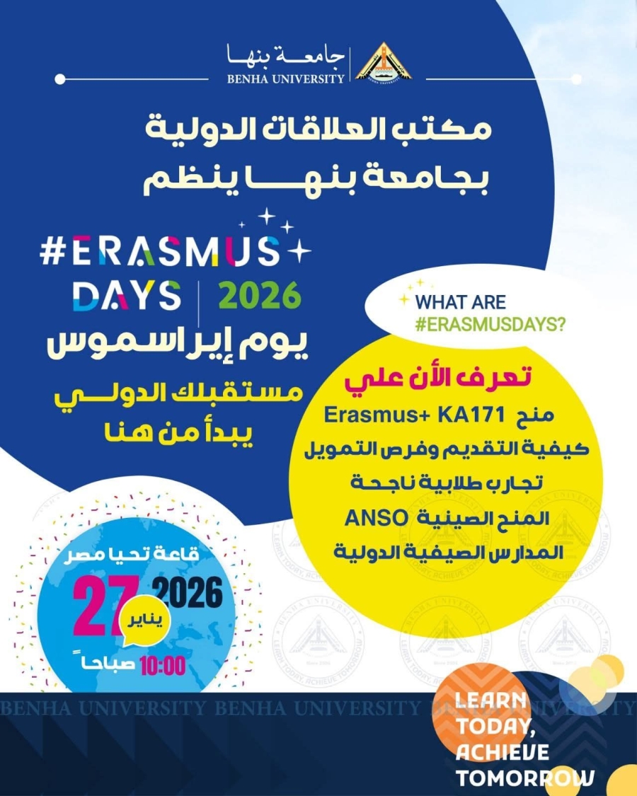 يسر مكتب العلاقات الدولية بجامعة بنها دعوتكم لحضور يوم إيراسموس للتعريف بـ: